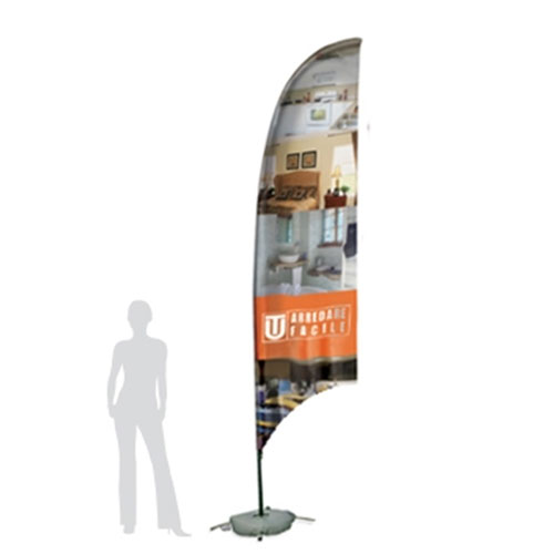 Universale, leggera e versatile: la bandiera a vela è ideale sia per esterno che per interno. Offre una grande durata e robustezza.La bandiera a vela è disponibile in diverse altezze (vedi la scheda Misure) e con diverse basi: a croce (eventualmente zavorrabili con la borsa ad acqua), con picchetto per fissaggio al terreno o con forconi per il fissaggio sotto le ruote delle autovetture o blocchi di cemento.